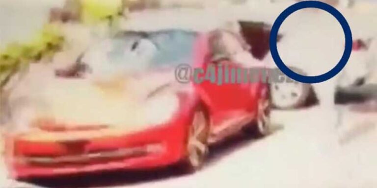 En las imágenes se observa un vehículo sedán en color blanco arribar hasta el sitio donde ‘El Zeus’ se hallaba y luego un hombre desciende de la unidad para disparar en múltiples ocasiones al sujeto.