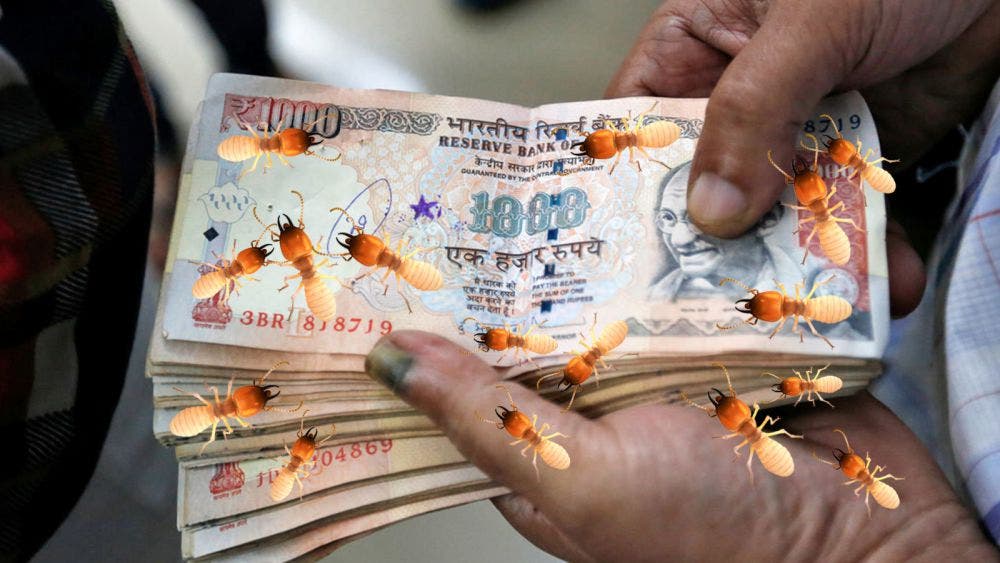 #AndhraPradesh: A business man from Krishna district chosed to save his earnings in a trunk stored at home, he received a shock when he found termites destroyed the currency. Bijli Jamalayya, a resident of Mylavaram, lost all his savings. pic.twitter.com/FF9BrpRQMi