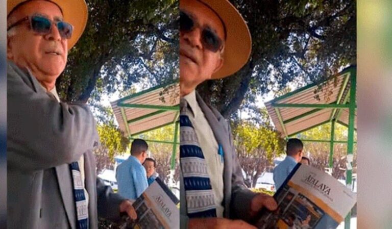 El vídeo inicia cuando al sujeto dando la palabra a un transeúnte a leer la revista “Atalaya” de la religión Testigo de Jehová.