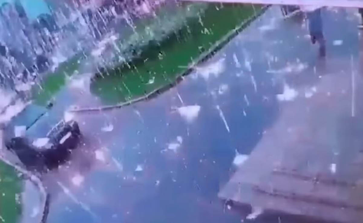 La estructura ubicada en el techo de un edificio recibió el impacto de rayo lo que generó una lluvia de chispas que cayeron sobre los peatones.