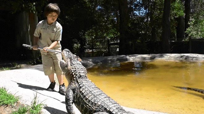 Ora sí que ya tenemos al nuevo Steve Irwin, el domador más joven del mundo que ha conquistado el internet por su valentía y seguridad al agarrar al cocodrilo.