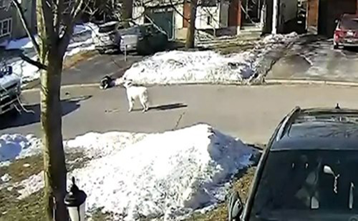 Jaw-droppin’ security footage of an Ottawa dog flagging down a car to help her owner, who had a seizure.