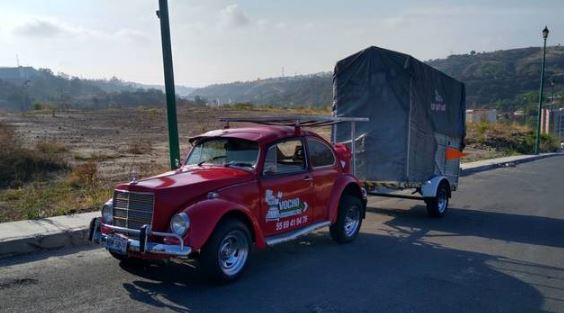 Este servicio se realiza en un clásico Vokswagen que arrastra un remolque, el cual se convierte en mudanza.