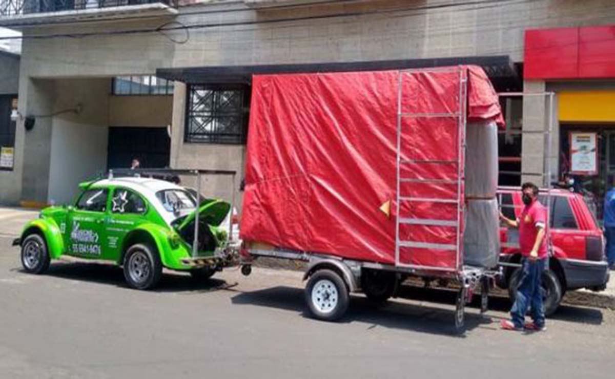 Este servicio se realiza en un clásico Vokswagen que arrastra un remolque, el cual se convierte en mudanza.