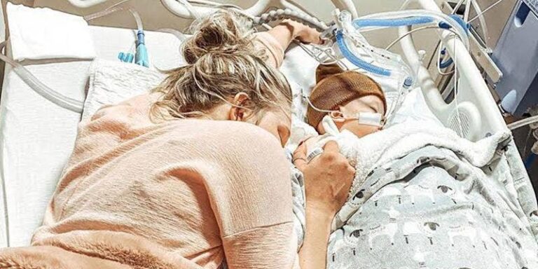 En algunas fotos, se podía ver a la influencer acostada en la cama del hospital junto a su bebés después de su muerte, en otra aparece junto a su esposo abrazando al pequeño, quien está conectado a diferentes tubos.