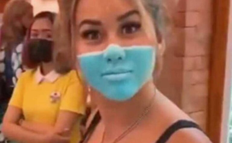 La broma de los influencers consistió en que Leia paseaba por un supermercado con la mitad del rostro pintado de azul simulando un cubrebocas.