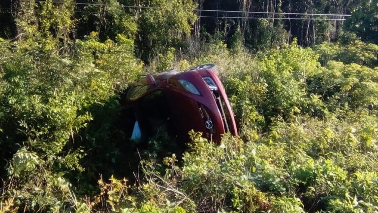 Se trata de un vehículo Mazda 6. color rojo, con placas URT-404-H del Estado de Quintana Roo, el cual conducía el B.A.R. de 43 años de edad, quien debido a la neblina perdió el control de la guía, por lo que se salió de la cinta asfáltica de rodamiento y terminó volcado de su costado derecho, a unos 4 metros de la vía de circulación.