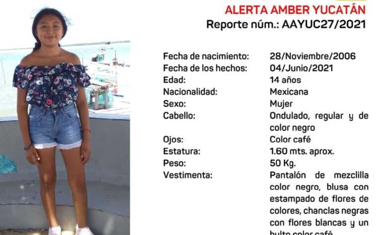 La Fiscalía General del Estado (FGE), activa la Alerta Amber para localizar a una menor de 14 años reportada como desaparecida en Tizimín.