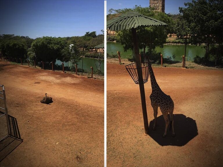 Jirafa del Zoológico Animaya buscando sombra