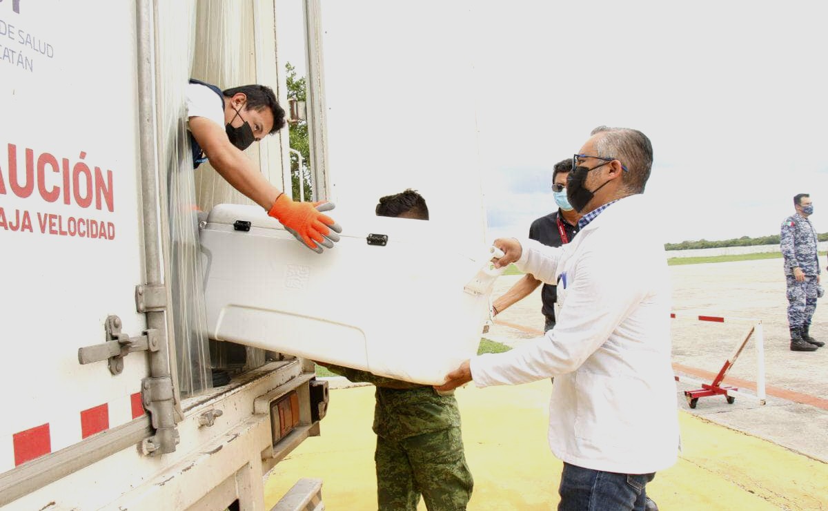 Un total de 149,340 nuevas vacunas contra el Coronavirus arribaron esta tarde a Yucatán para la aplicación de la primera dosis de personas de 40 a 49 años de Valladolid, Ticul, Tekax, Motul, Peto, Río Lagartos y San Felipe, así como segunda dosis a personas de 50 a 59 años de Umán, Buctzotz y Mérida y completar la segunda dosis a personas de 50 a 59 años de Progreso, Tizimín, Valladolid y Kanasín.