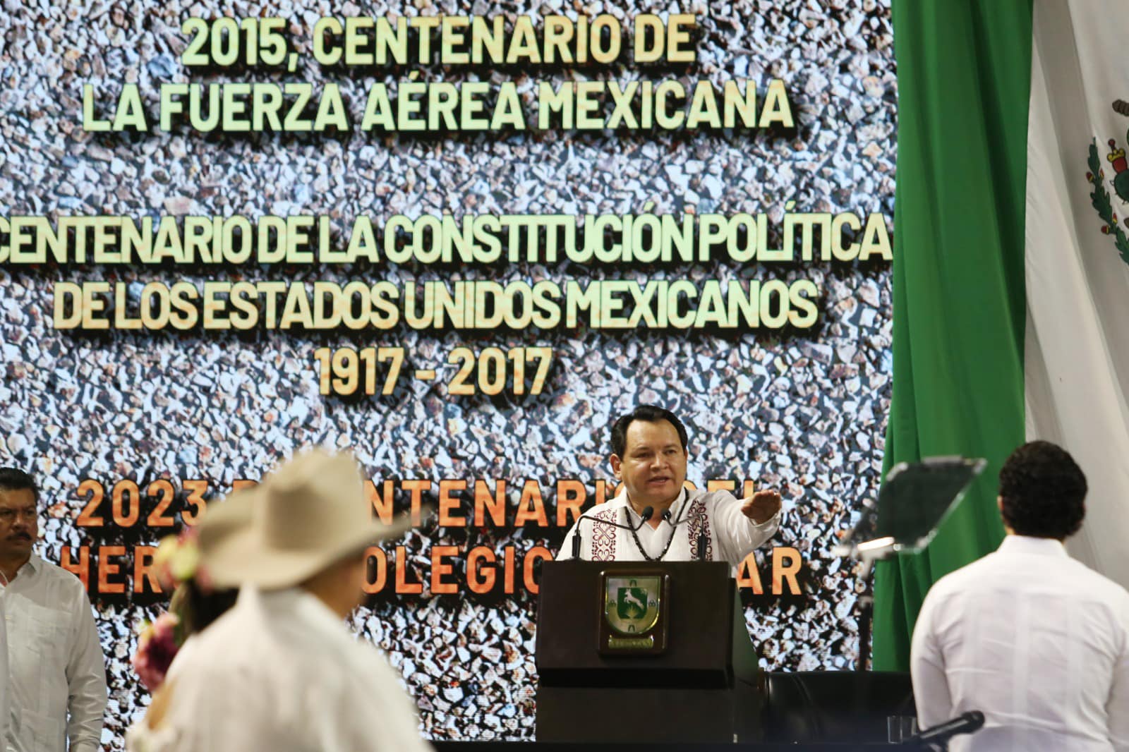 «Hoy me presento ante ustedes, frente al pueblo que me ha otorgado su confianza, con el corazón lleno de gratitud, compromiso y responsabilidad» señaló el nuevo Gobernador, quien agregó que «Hoy, más que nunca, el futuro de Yucatán nos pertenece a todos».