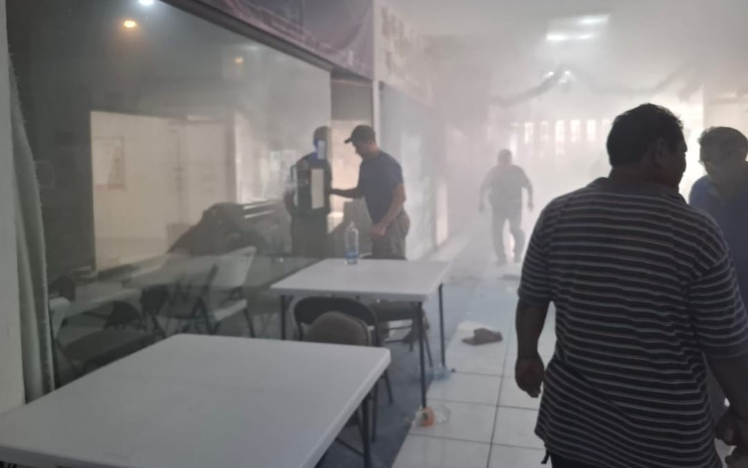 Atienden emergencia por incendio en plaza comercial de Mérida