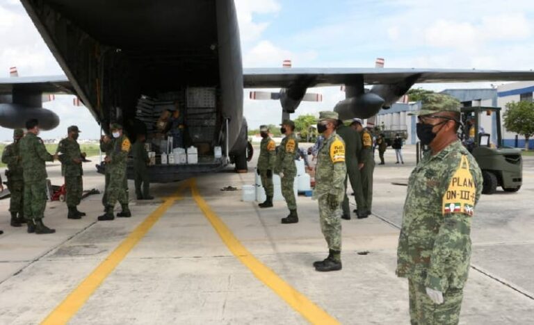 En la Base Aérea Militar No.8, aterrizó el avión Hércules C-130 de la Fuerza Aérea, el cual transportaba aproximadamente 5 toneladas de material y equipo médico, entre camas hospitalarias, ventiladores y monitores, para el equipamiento de las Unidades Operativas de Hospitalización y de Terapia Intensiva del 11o. Batallón de Infantería y 7º. Batallón de Ingenieros de Combate.
