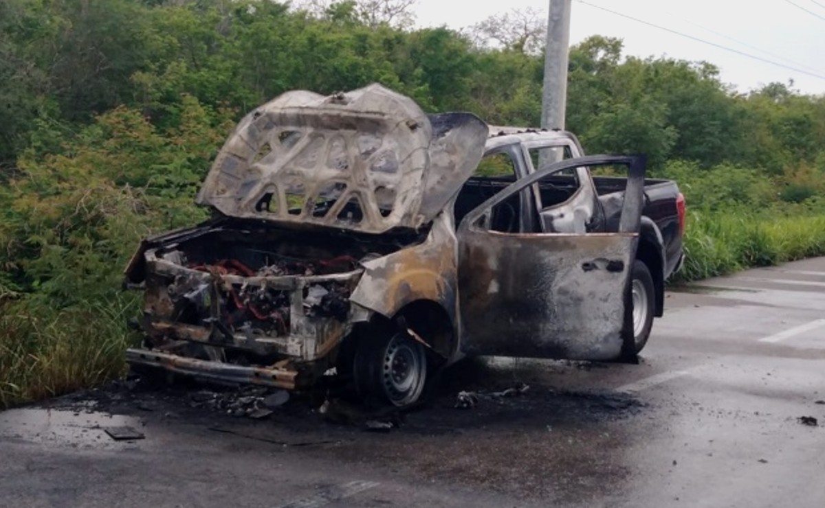En el kilómetro 24 de la vía Mérida-Progreso, una camioneta Frontier con placas YR-8820-B, acabó consumida por las llamas del fuego tras incendiarse luego de que comenzara a salir de la parte delantera del vehículo para en cuestión de minutos incendiarse.