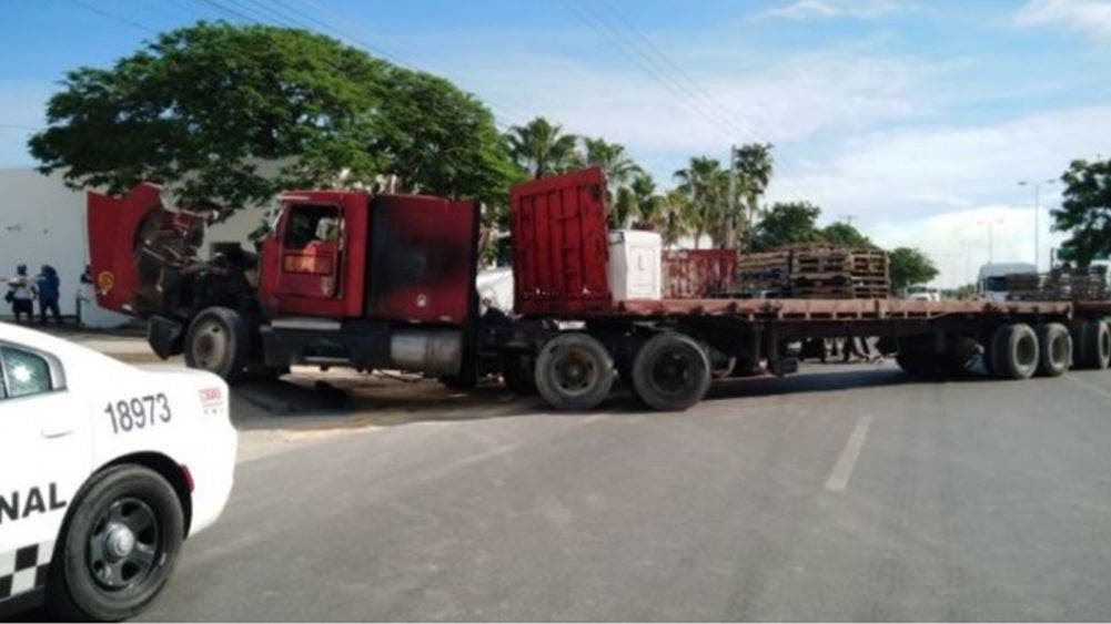 Por el tamaño de las unidades, que ocupaban el carril por el accidente, la carretera federal Mérida-Umán tuvo que ser cerrada mientras movían los vehículos pesados que quedaron atravesados en la vía y se limpiaba el diésel del pavimento.