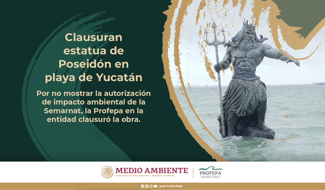 La polémica estatua del dios griego Poseidón, erigida en una playa de Progreso, Yucatán, fue clausurada por las autoridades federales de la Procuraduría Federal de Protección al Ambiente (Profepa).