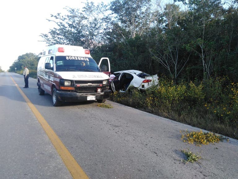 El accidente se registró en el kilómetro 95+500 de la carretera federal Mérida-Cancún, cuando el conductor de un vehículo Mitsubishi identificado como Noé P. de 43 años, transitaba sobre la vía en exceso de velocidad motivo por el que en un momento dado ‘piso de más’ el acelerador y lo llevó a perder el control del volante para después salir de la cinta asfáltica y terminar con lesiones y daños materiales en el área verde.