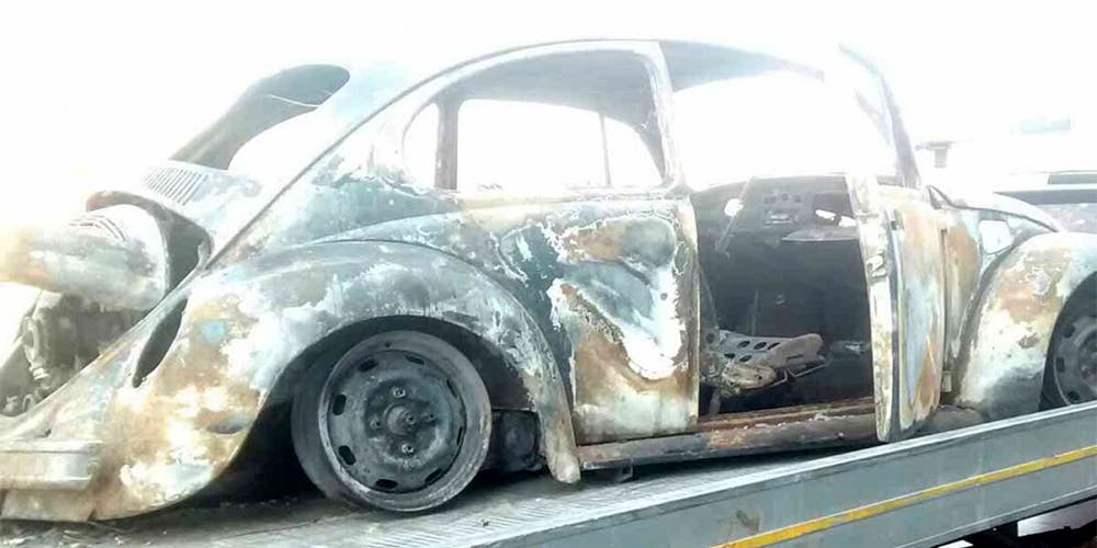 Hasta el lugar se presentaron elementos del cuerpo de bomberos de la Secretaría de Seguridad Pública, para sofocar el fuego que tenía el Volkswagen.
