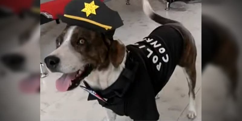 “Chilaquil” fue curado de moquillo y una vez que sanó, lo alistaron para ser un perro policía.