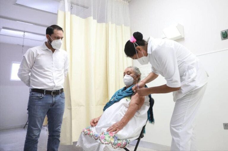 El Gobernador de Yucatán, Mauricio Vila Dosal, encabezó la supervisión de aplicación de vacunas contra el coronavirus Covid-19 en adultos mayores, donde la primera en recibir la dosis fue una mujer de 84 años identificada como Justina Mex.