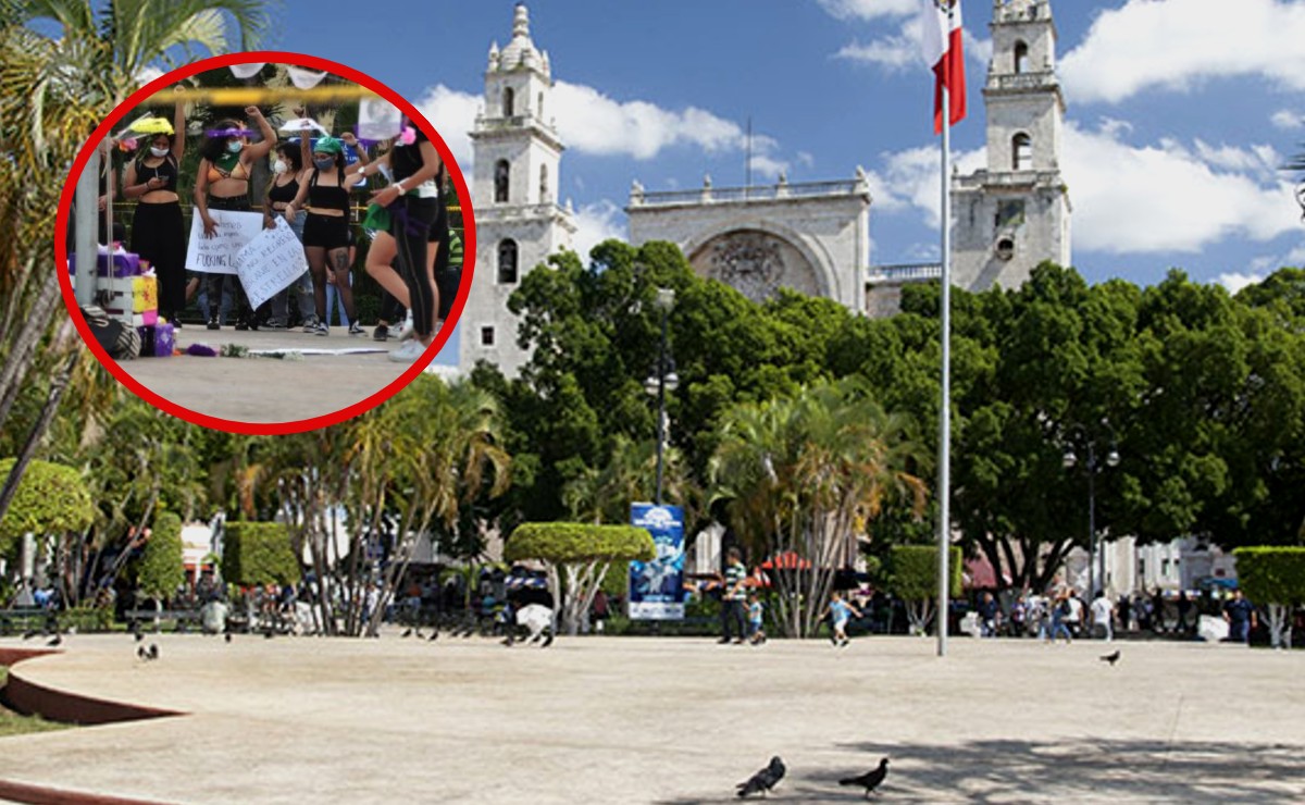 Feministas se manifiestan en la plaza grande de Mérida