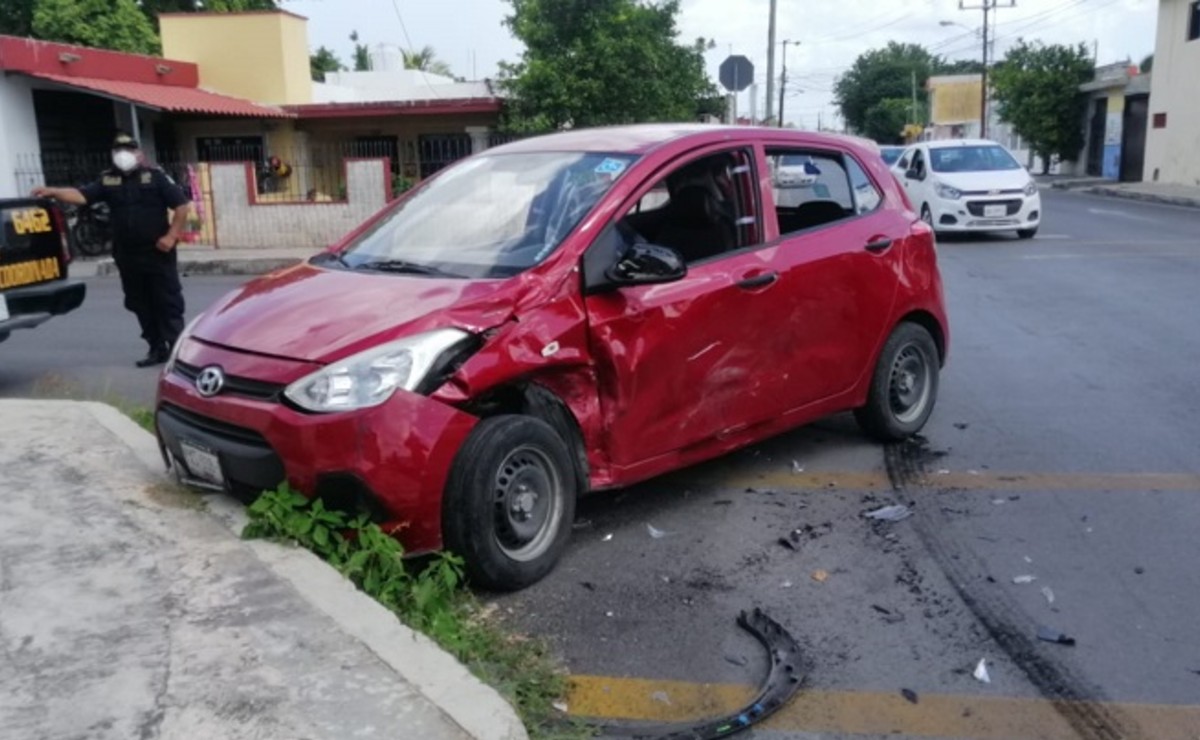 Los hechos se registraron sobre la calle 117 con 54 de la colonia Mercedes Barrera en Mérida; cuando por la imprudencia de un conductor de taxi habilitada como taxi de una plataforma digital decidió no respetar el alto y fue impactado por una camioneta Renault quien viajaba con preferencia de paso.