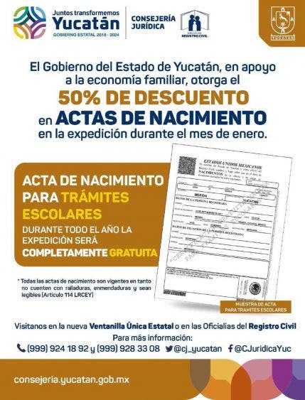 La directora general del Registro Civil, Celia María Rivas Rodríguez, mencionó que de acuerdo al decreto que estableció el Gobierno del Estado, las personas pueden solicitar el acta de nacimiento de manera gratuita que servirá exclusivamente para los trámites escolares.