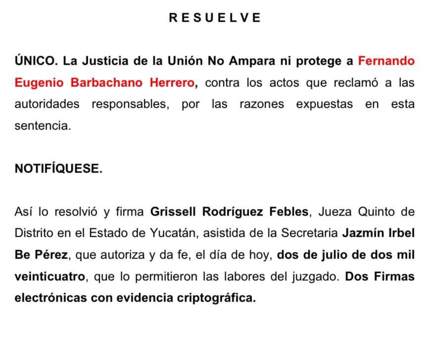 Además, mencionó que existe un expediente penal en el que Barbachano Herrero ha sido vinculado a proceso y que recientemente perdió un juicio de amparo con el que buscaba eludir la acción de la justicia.