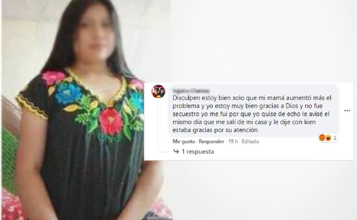A través de una cuenta de Facebook con los nombres Yajaira Cherrez, quien presuntamente corresponde al de la menor de 14 años reportada como desaparecida, emitió una publicación en la que indica que no fue secuestrada, ni se encuentra desaparecida, pues todo indica que se fue de casa porque sus padres no aceptan la relación que tiene con un joven.
