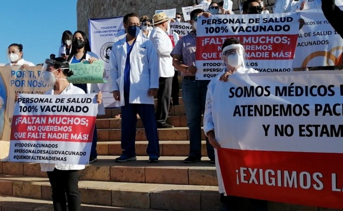 Médicos de Yucatán protestan para que se agilice su proceso de vacunación contra el Covid