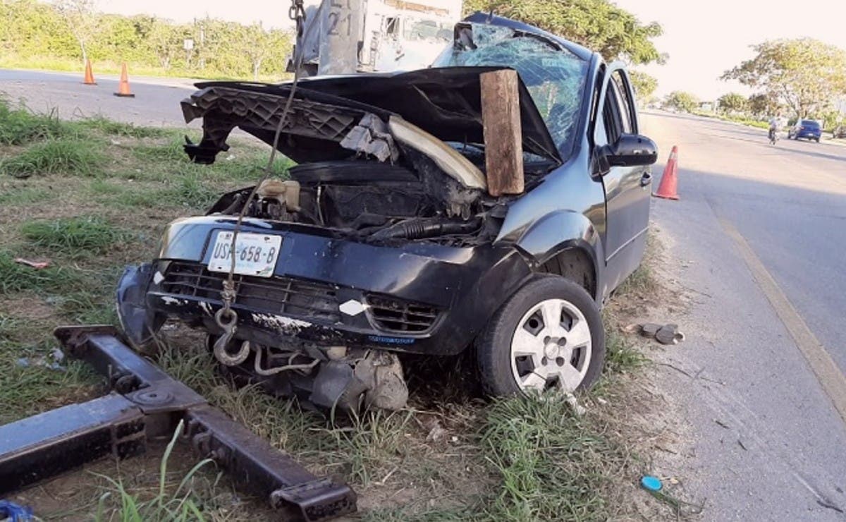 Los hechos se registraron durante las primeras horas del día, a la altura del kilómetro 47 del periférico de Mérida, cuando dos agentes de la policía se dirigían a trabajar al Complejo de Seguridad Pública a bordo de un auto Ford Fiesta con placas USR-658-B de Quintana Roo, cuando de repente otro vehículo sin preferencia de paso cruzó y los afectados para no chocar contra este, volanteó hasta impactarse contra un poste de alumbrado público.