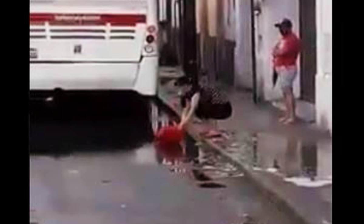 En el clip, se escucha decir al denunciante que la señora estaba limpiando los pisos del local de comida ubicado en la calle 67 por calle 62 y 64 del Centro de Mérida, con el agua de charco, indicando lo siguiente: