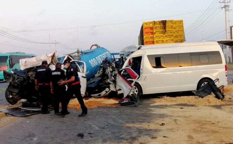 Los hechos se registraron en la carretera Mérida-Cancún, a las 5:30 horas de la mañana, cuando una unidad de transporte púbico tipo Urvan, se impactó contra un camión de la empresa Sanirent, el cual minutos antes había chocado contra un tráiler que estaba incorporándose a la vía, luego de salir de la Hacienda Teya, para dirigirse a Mérida, sin embargo este quedó en medio de la carretera.