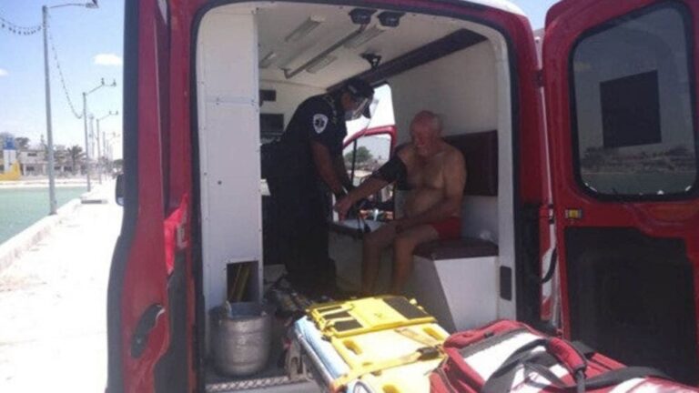 Una lancha de la SSP comenzó la búsqueda, la cual avistó al náufrago, el cual luego de ser rescatado, fue llevado al muelle de Chicxulub donde ya lo esperaban paramédicos de la propia Secretaría. Los rescatistas evaluaron su estado y lo trasladaron al Centro de Salud. Presentaba deshidratación y una herida abrasiva en la pierna izquierda.