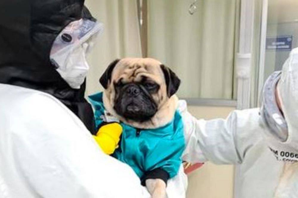 Un perro pug acudió a visitar a enfermeros del ISSSTE en Mérida para aliviar su estrés, el cual ha sido generado en esta lucha constante contra el Covid-19.