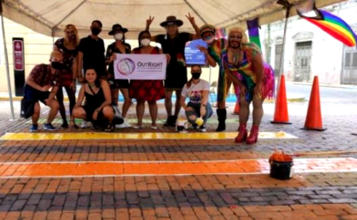 Colectivos pintaron un paso peatonal en la Mejorada, Mérida; para visibilizar el apoyo a la comunidad LGBT, reafirmando “Avanzamos con ternura radical”.