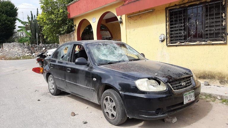 Policías de Izamal se niegan a detener a sujetos que causaron destrozos a una vivienda y a un coche de una familia de la colonia San Francisco.