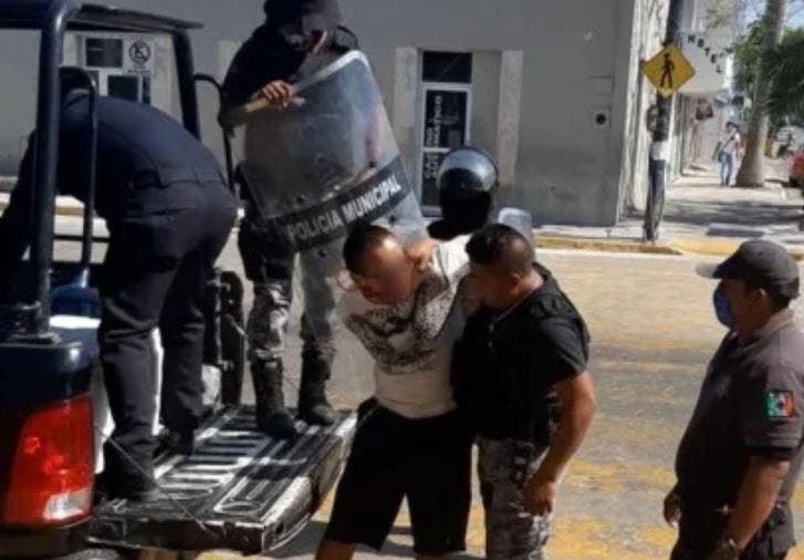 Un sujeto de aproximadamente 45 años de edad, fue detenido en Progreso por alterar el orden público al incitar a los demás ciudadanos a que se manifiesten en el palacio municipal del puerto para recibir apoyos por la contingencia.