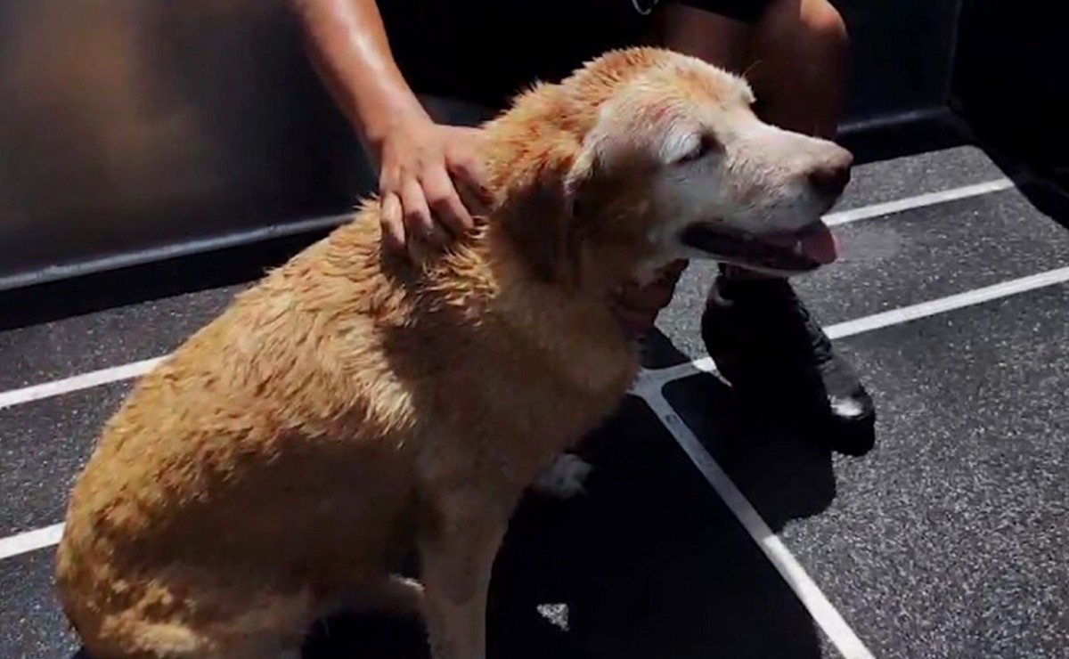 Al pasar por la zona, se percataron de que algo se encontraba moviéndose entre las aguas del puerto de progreso, por lo que aproximaron su lancha, y se dieron cuenta de que era una canina que luchaba por mantenerse a flote.