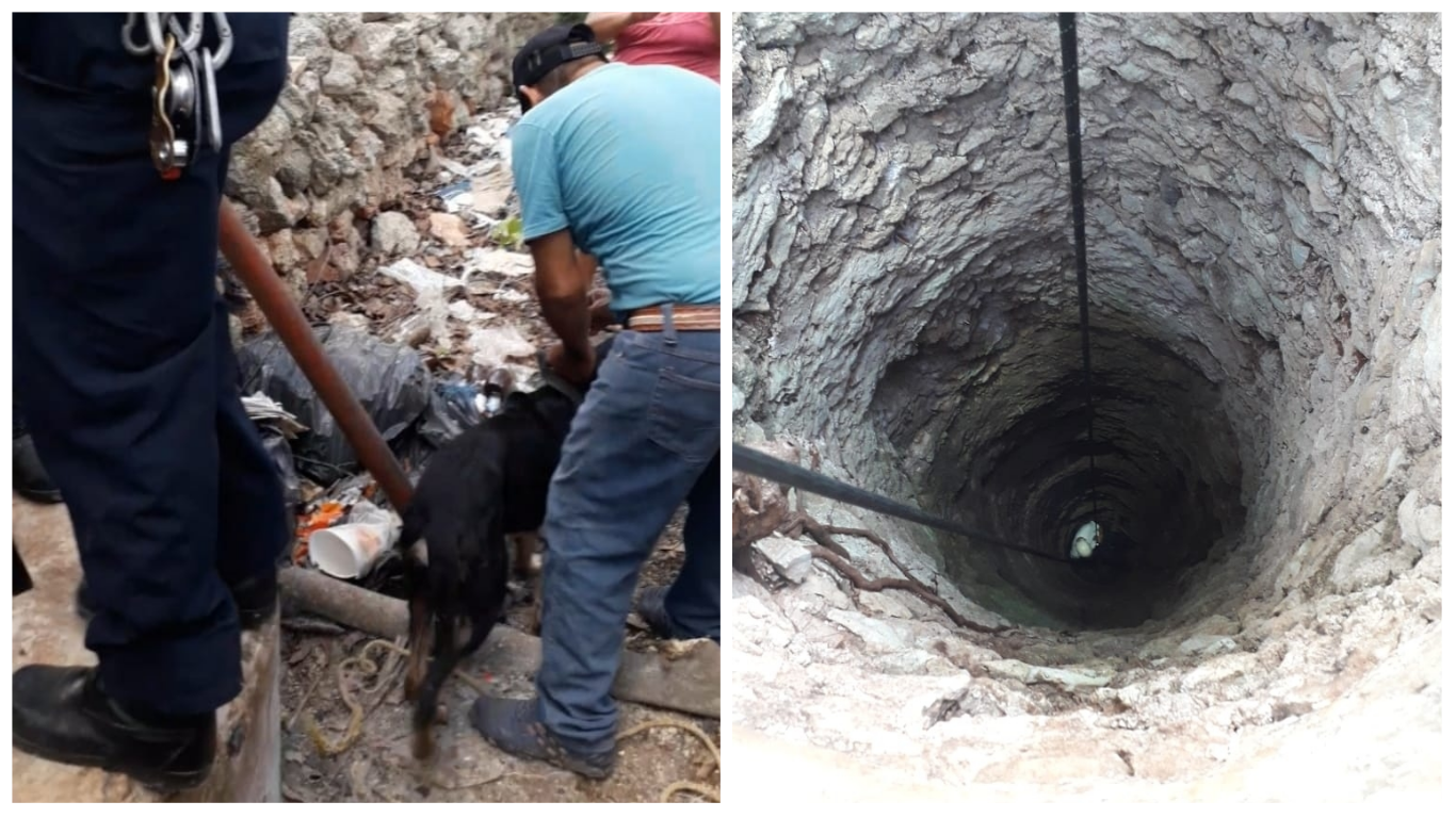 En Yucatán rescataron a un perro que se cayó en un pozo, donde estuvo durante tres días.