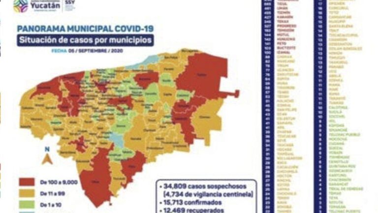 Así que en Yucatán ya son 15,828 casos positivos de coronavirus, y de ellos 8,724 se han dado en Mérida, más específicamente, 2,212 en la zona norte, 2,402 en la zona oriente, 902 en el Centro, 1,315 en el sur, y 1,893 en el poniente. En total, son 2,110 las personas fallecidas.