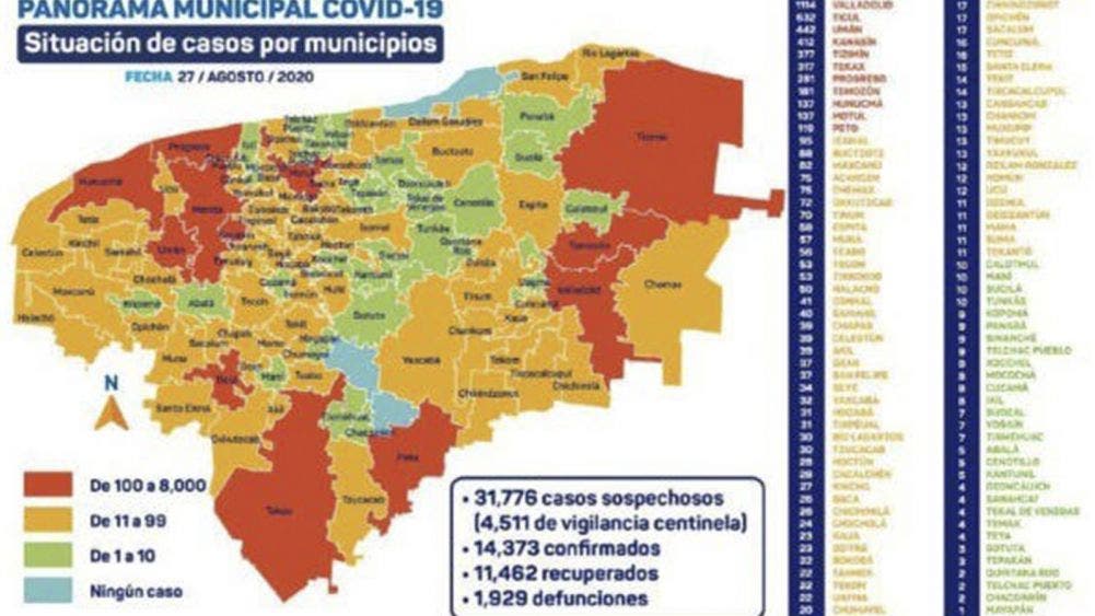 Por lo que hoy los Servicios de Salud reportaron 165 nuevos contagios, y 26 decesos. Según el reporte, los casos positivos de coronavirus ya suma 14 mil 373 en Yucatán. Asimismo, el número total de fallecimientos por coronavirus en Yucatán es de 1,929 personas.