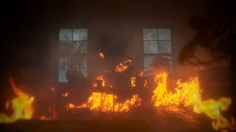 Al llegar, pudo notar de inmediato como su hogar estaba prácticamente hecho cenizas y con ello las lágrimas invadieron su rostro pues se quedó sin hogar, ropa, animales y artefactos que consiguió a lo largo de su vida.