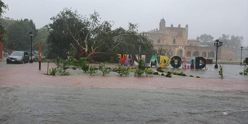 En Valladolid se han reportado la caída de varios árboles e inundaciones, por lo que las autoridades han indicado que los ciudadanos deben permanecer en sus hogares, debido a que gran parte del estado se encuentra en alerta roja por el paso del fenómeno natural.