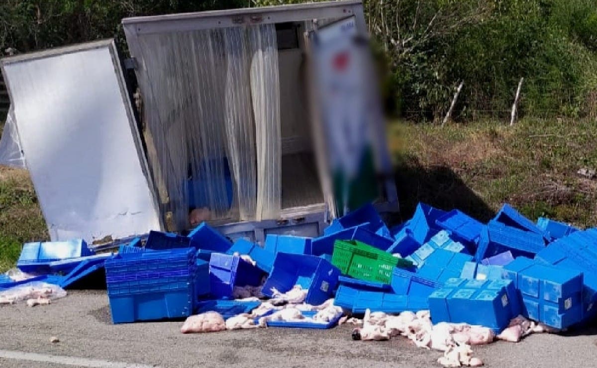 Lamentablemente, la carga de pollos fríos quedó regada en gran parte de la carretera, representando una fuerte pérdida económica.