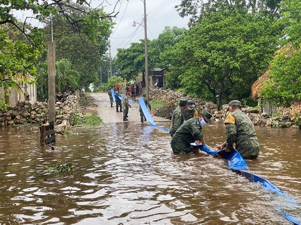 Ante las inundaciones registradas en Yucatán, la Secretaría de la Defensa Nacional, a través de la X Región Militar y la 32/a. Zona Militar, desplegaron tropas del Ejército Mexicano para la aplicación del Plan DN-III-E en auxilio a las familias afectadas.