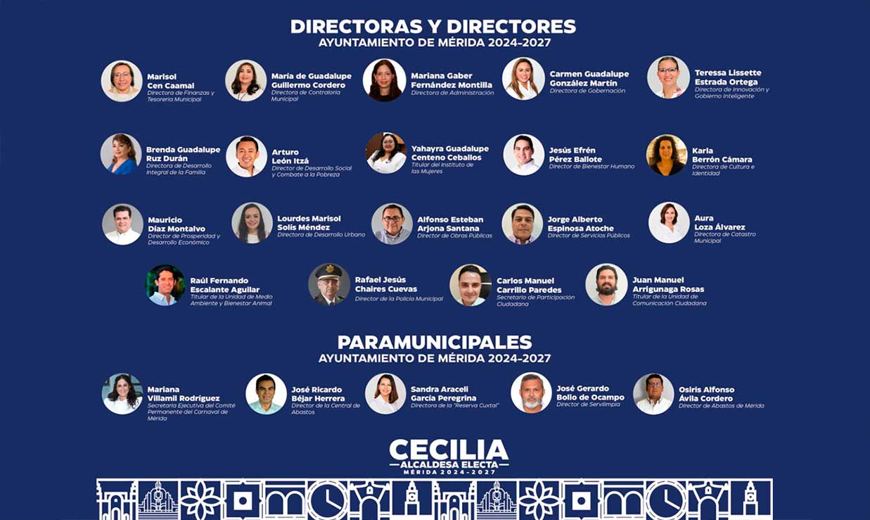 El Ayuntamiento de Mérida 2024-2027 y su nueva forma de gobernar contará con un gabinete municipal paritario conformado por mujeres y hombres con capacidad y experiencia comprobadas y compromiso con su ciudad.