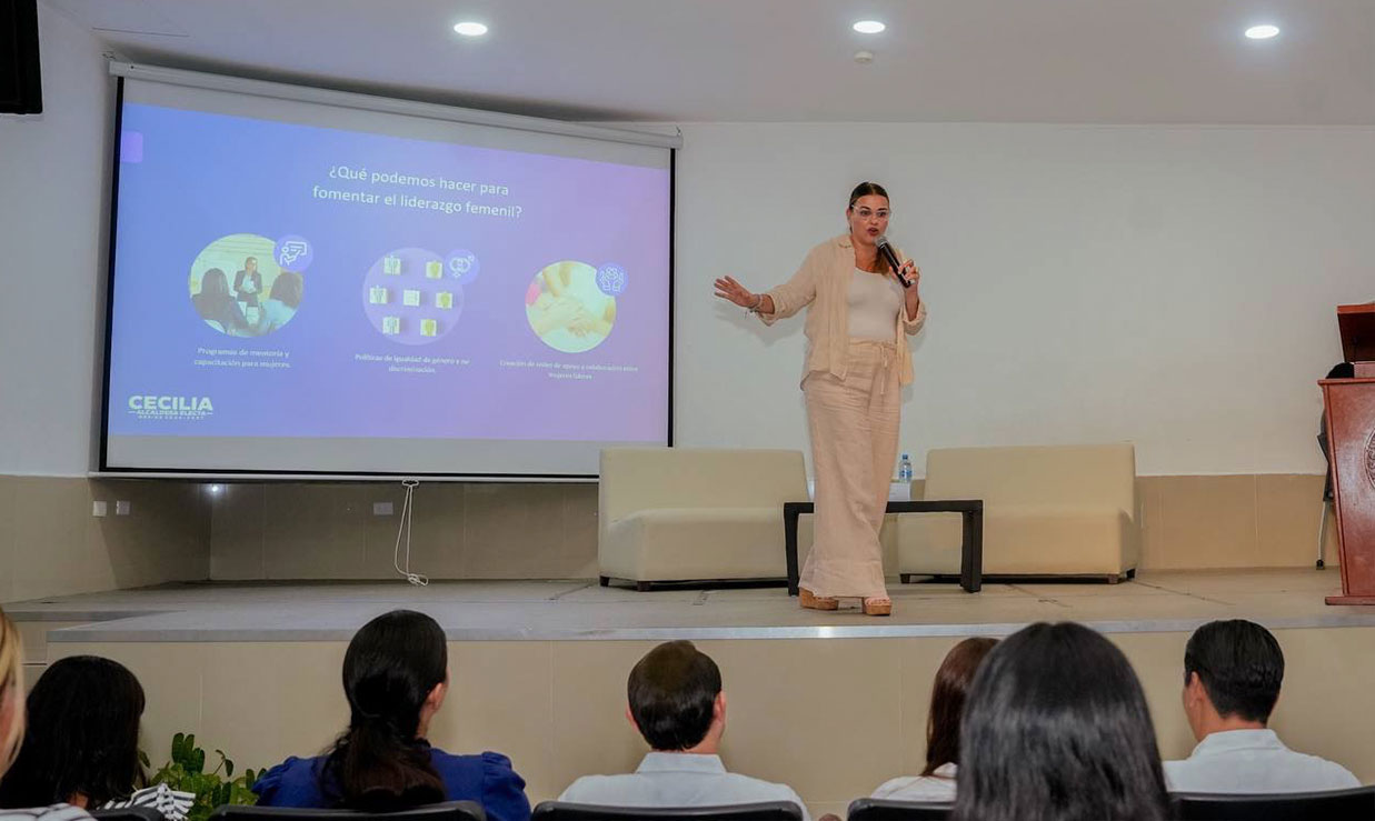 Desde el Ayuntamiento de Mérida, con una visión femenina impulsaré la paz mediante políticas públicas que incentiven la colaboración de hombres y mujeres por igual, afirmó la alcaldesa electa Cecilia Patrón Laviada, durante la conferencia “Transformando ciudades: El poder del liderazgo femenino en la gobernanza local” que impartió en la Universidad Modelo.
