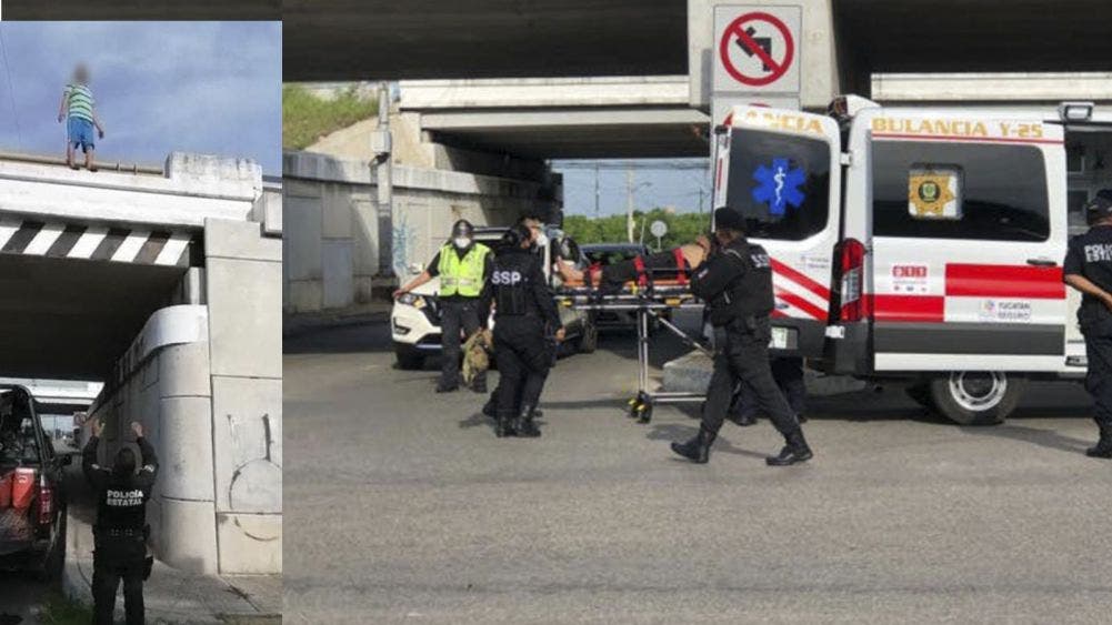 (VIDEO) Sujeto se arroja de puente en Mérida; dos lesionados.Sin hasta el momento se sepa el motivo por qué un sujeto intentó contra su vida, pero este se arrojó desde un puente en el periférico de Mérida, esta mañana y lesionó a un policía estatal el cual intentaba persuadirlo.