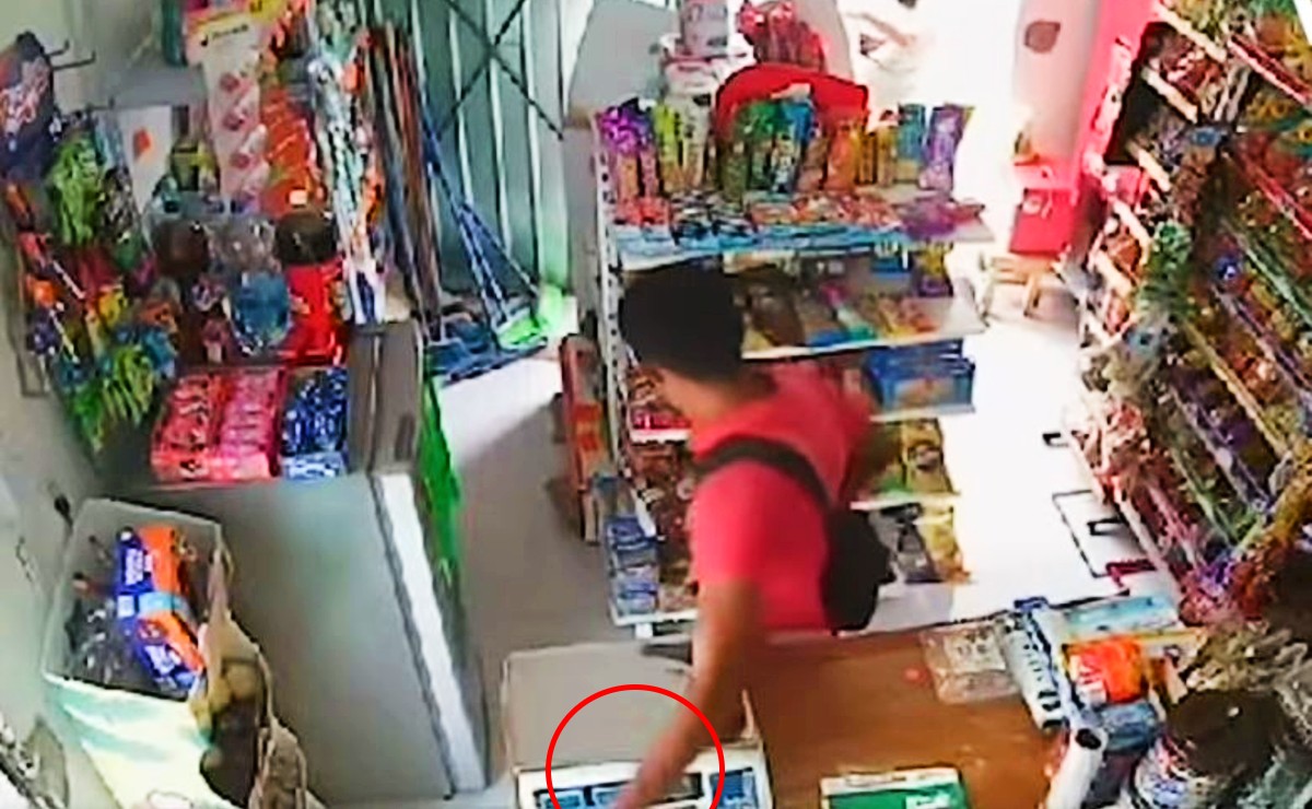 Al salir a ver lo que vendía, al parecer unos focos, se percató que el ladrón entró a la tienda y otro de sus compañeros fue a buscarlo para indicarle que se retiraba de la zona.